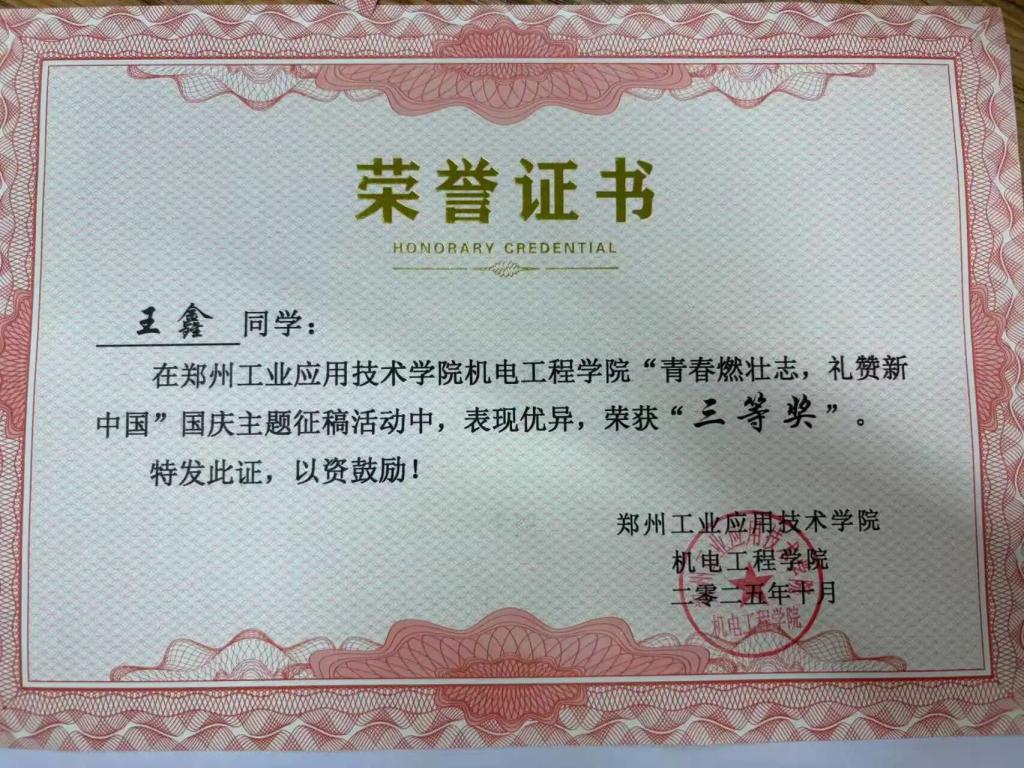 三等奖:杨贺威、郑永政、王鑫