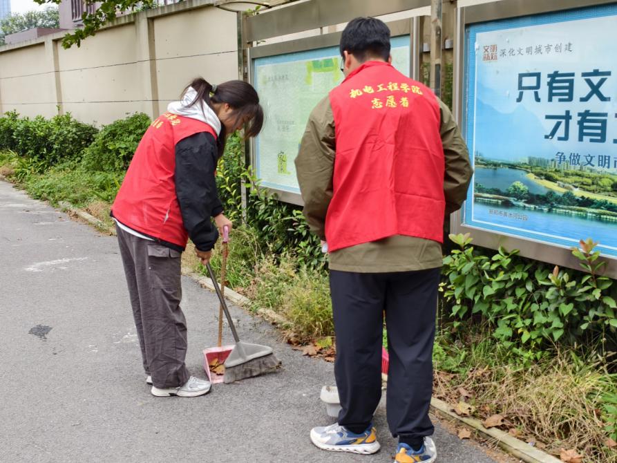 活动伊始,志愿者们迅速分成小组、明确分工,带着扫帚、簸箕等工具投入工作。面对社区公共区域的落叶与生活垃圾,大家分工协作、相互配合,弯腰清扫、细致捡拾,不放过墙角、绿化带等卫生死角;针对部分电动车乱停放影响通行的问题,志愿者们有序将车辆推移至指定停放区域,耐心整理车辆排列,让社区道路恢复整洁通畅,得到不少居民的点赞认可。