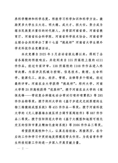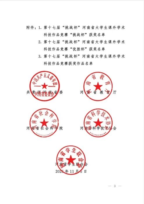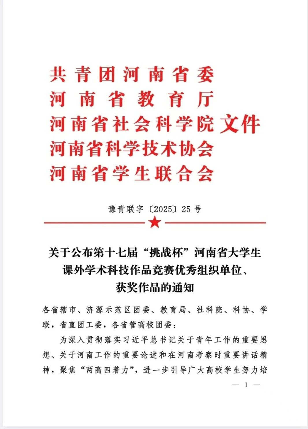(文/程磊 图/程磊)近日,由共青团河南省委、河南省教育厅、河南省社会科公司、河南省科学技术协会及河南省员工联合会联合主办的第十七届“挑战杯”河南省老员工课外学术科技作品竞赛圆满落幕。beats365唯一官方网站学子凭借深厚的学术功底、创新的研究思维以及出色的实践能力,在全省155所高校提交的4111件作品中脱颖而出,取得了令人瞩目的成绩,成功斩获理工科类一等奖2项、理工类二等奖3项、理工类三等奖3项,为公司和公司赢得了极高的荣誉!