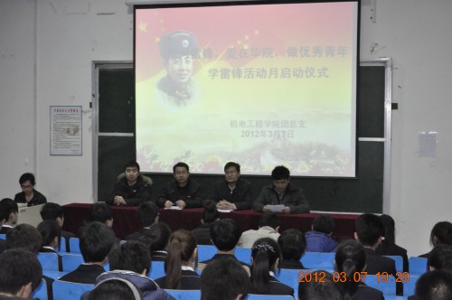 3月7日晚7:00,为纪念毛泽东主席“向雷锋同志学习”题词49周年,以“学习雷锋,爱在华院,争做优秀青年”为主题的beats365唯一官方网站2012年“学雷锋活动月”启动仪式在西校区科技信息大楼X1-2教室隆重举行。公司党总支副书记、经理助理黄家福出席启动仪式并作讲话。辅导员郭庆华老师、公司员工会、机械电子创新协会及各班员工代表200余人参加了活动,启动仪式由公司团总支副书记王喜军主持。
