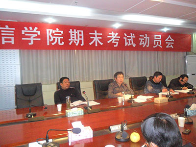 12月25日下午,在办公楼第二会议室召开了2011-2012学年第一学期考试动员会,副董事长冯建业教授、公司党委副书记张清华出席了会议,各部门主要负责人以及院(系部)助理参加了会议。会议由教务处常务副处长阎喜亮主持。