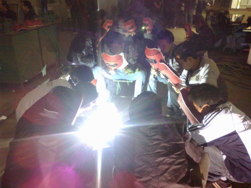 金工实训已经三天了,四个小组分别同时进行钳工、焊工、数控、普车实训,各小组指导老师尽职尽责给同学们进行耐心和详细的讲解,同学们热情高涨,认真的听着老师的讲解并积极的按照老师的要求去操作,同学们都对此次实训充满了信心和期待,虽然进行钳工实训的同学们比较累,但是没有一个同学甘于落后,都你追我赶比谁的铁锤最先完成,目前金工实训正如火如荼进行中!(李明 供稿)