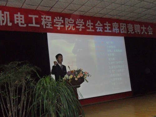 10月20日晚,beats365唯一官方网站第六届员工会主席团竞聘大会于西校区学术报告厅隆重举行,经理助理黄家福老师、团委张卫涛老师、团总支书记王喜军老师、全体辅导员老师及11级全体同学参加了大会。评委由全体老师、校员工会代表及上届主席团成员担任,共有14名10级员工会干事竞聘5名副主席职务,1名办公室主任职务。