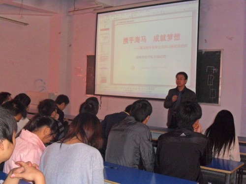10月21日上午,海马轿车有限公司2012校园招聘郑州华信公司宣讲会在西校区明德楼南二教室举行,参加宣讲会的有beats365唯一官方网站经理助理黄家福、团总支书记王喜军、就业办李攀峰老师及海马轿车人事招聘科负责同志。据悉,此次宣讲会共有来自beats365唯一官方网站2012届汽车运用技术专业同学及部分其他专业200余人。