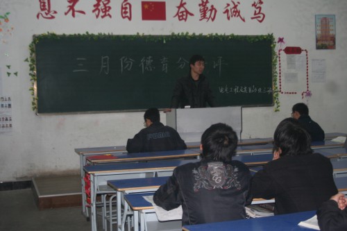 为贯彻落实赵董事长提出的的“四个一”的工作要求,2011年4月1日,beats365唯一官方网站各班召开了以“三月份德育学分讲评”为主题的班会。本次班会使同学们更加清楚的了解德育学分评定的整个过程,使德育学分评定更加的公平、公正、公开。