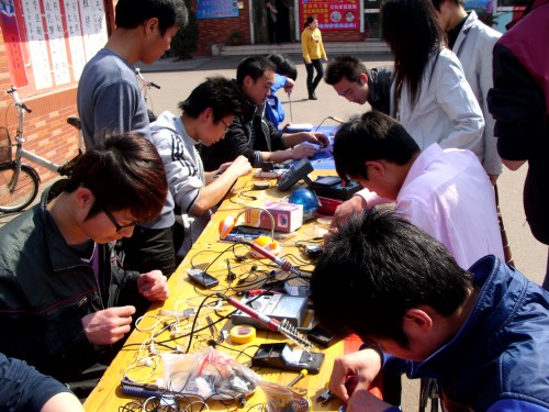 春暖花开,阳光明媚,在我们尽情呼吸新鲜空气,享受大自然美好赏赐的同时,机械电子创新协会于3月27日中午在公司一餐厅广场开展了“电器义务维修活动”,此项活动为师生解决了日常生活中的疑虑,受到广大师生的好评。雷锋精神永存,会员们表示要把这种精神发扬下去。(夏孟丽 供稿)