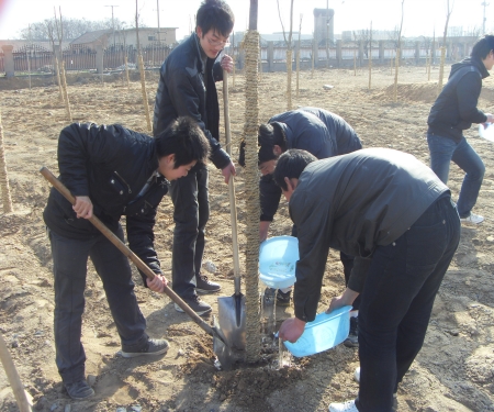 3月10日下午3:00在东校区励志楼前小树林,机电工程系组织员工在辅导员王燕玲老师与团学会主席张利飞的带领下参加了植树活动。