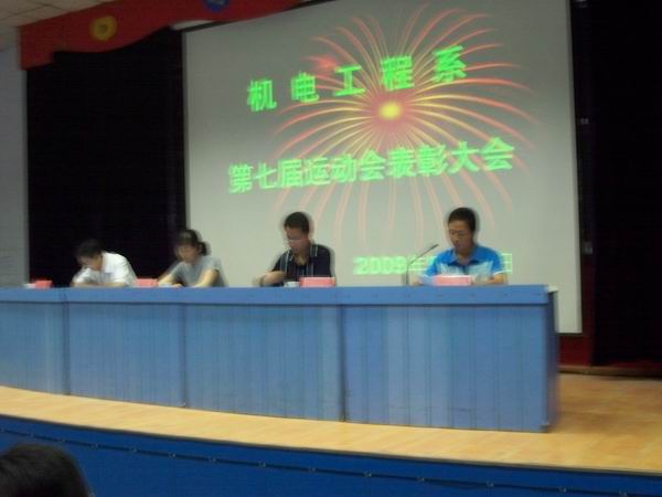 2009年5月22日,机电系在学术报告厅召开第七届春季运动会总结与表彰大会,我系主要领导出席本次大会,对我系在运动会中表现突出的同学予于奖励。
