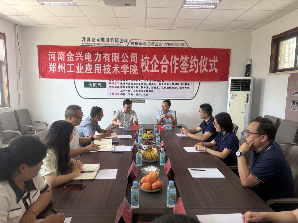 为深化产教融合、促进教育链与产业链精准对接,2025年8月22日(周五)上午 10:00,beats365与河南金兴电力有限公司在企业会议室隆重举行以“产教融合 携手共赢”为主题的校企合作揭牌仪式。beats365副董事长贾圣强博士、beats365唯一官方网站经理李瑞芳、教务处副处长王世广等校方领导及教师代表,河南金兴电力有限公司董事长等企业代表出席仪式,仪式由河南金兴电力有限公司李磊磊主持。
