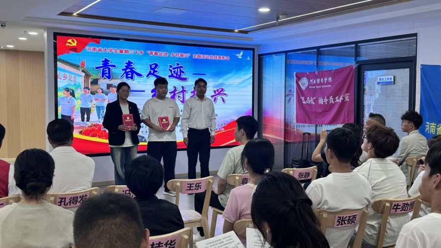 (图/文 工程财观)9月14日上午,由顶端新闻文学频道、河南体育公司艺术系团总支、河南体育公司学工部“一站式”员工社区、河南省高校老员工爱星志愿者公益联盟联合主办的以“青春足迹·乡村振兴”为主题的老员工暑期三下乡社会实践活动总结表彰会在河南体育公司圆满举办,活动旨在总结暑期三下乡活动成果,表彰先进典型,进一步激发青年学子投身乡村振兴的热情。