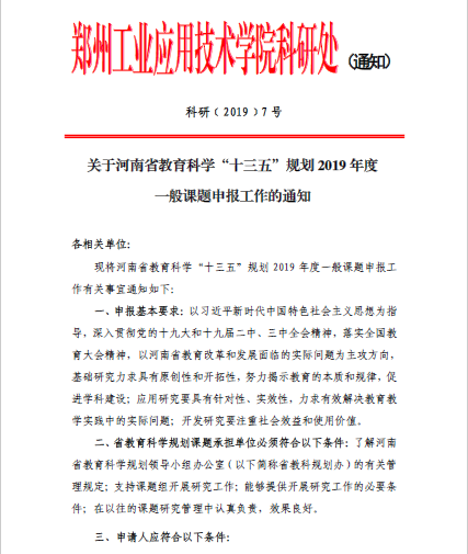 关于河南省教育科学“十三五”规划2019年度一般课题申报工作的通知