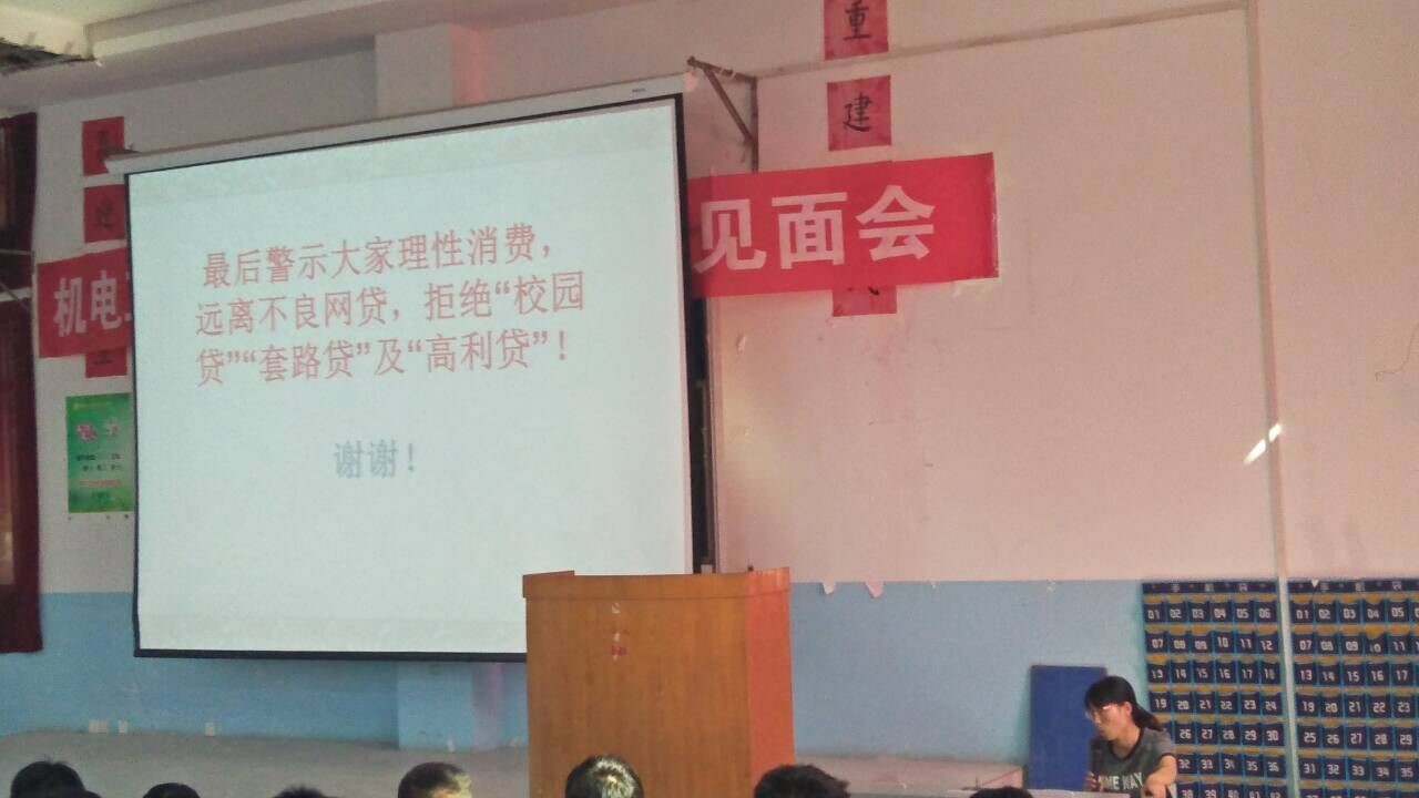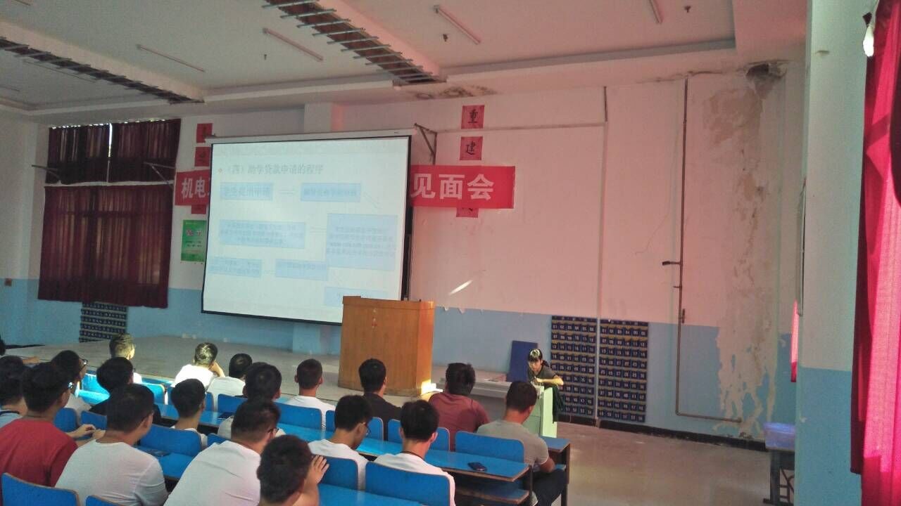 牛璐老师对本次会议的流程、背景、目的和要求进行介绍。首先,她用PPT介绍了高等公司员工经济资助政策,从资助范围、资助标准、申请条件、申请时间、发放时间这五个方面依次进行了详细地讲解。接着,她介绍了国家奖学金和国家励志奖学金的申请标准、评审及发放相关程序,并系统地讲述了生源地信用助学贷款及还款流程及相关注意事项。最后,牛老师警示大家理性消费,远离不良网贷,拒绝“校园贷”、“套路贷”以及“高利贷”!