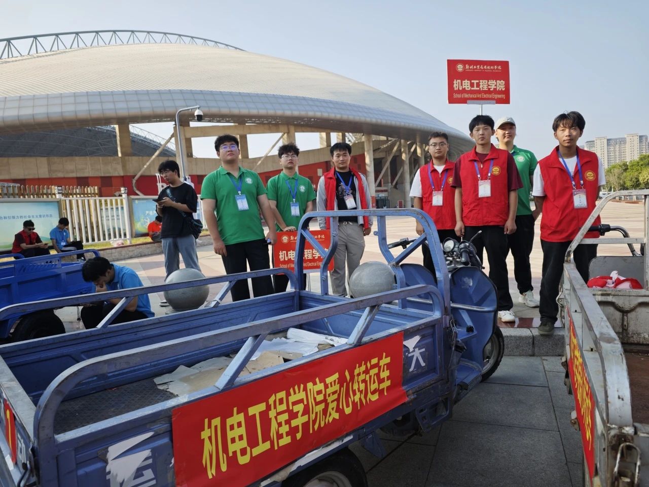 1.新生统一在东校区西门下车,下车后找到设立在门口的迎新志愿者,进行行李交接,行李会由志愿者送到宿舍楼下;
