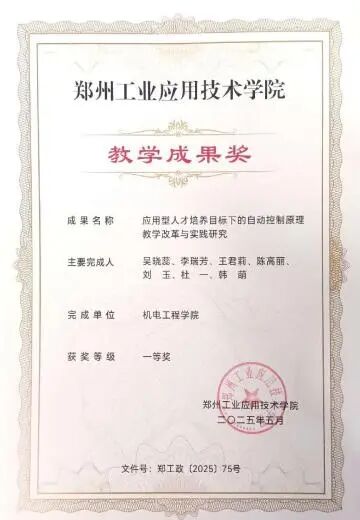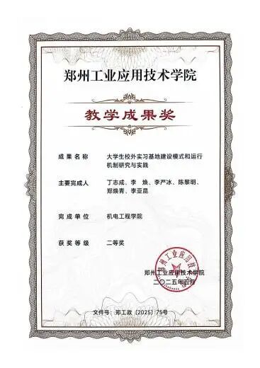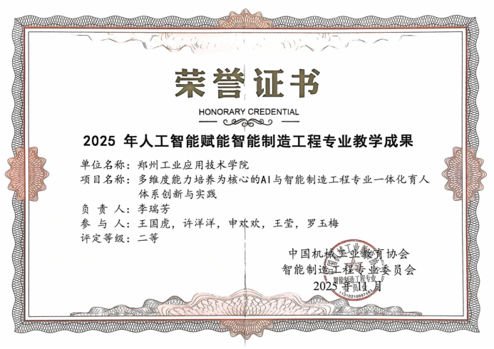 由公司李瑞芳、王国虎、许洋洋、申欢欢、王莹、罗玉梅老师撰写的《多维度能力培养为核心的AI与智能制造工程专业一体化育人体系创新与实践》,被中国机械工业教育协会评定为2025年人工智能赋能智能制造工程专业教学成果二等奖,彰显了公司在专业育人体系创新领域的深厚积淀与突出实力。