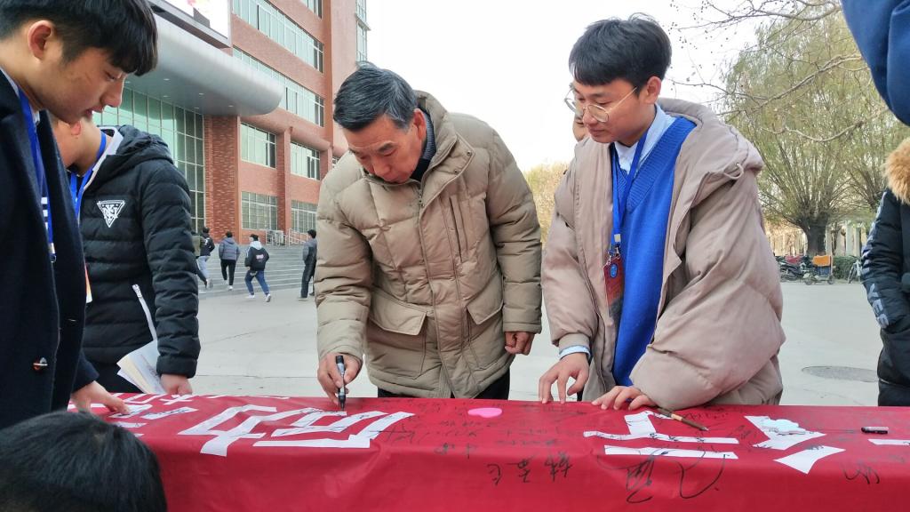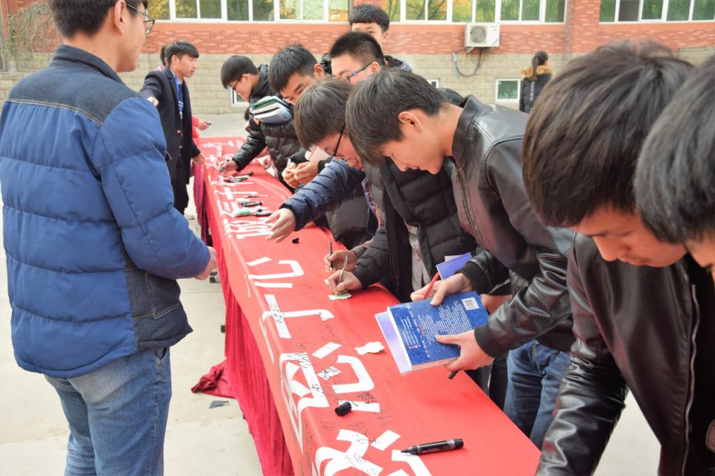 从 12点开始,写着“感恩于心 诚信于行 励志一生”的红色条幅就吸引了不少过往师生的目光,纷纷前来咨询。虽然寒风不断,但这丝毫没有阻挡师生们参与活动的热情,大家纷纷在条幅上签名,在便利贴上写上一段感恩诚信的话。签名活动得到了全院师生的大力支持,最终活动圆满结束。