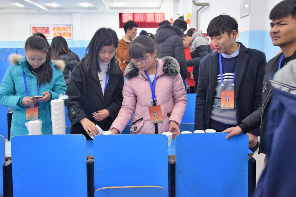 图为志愿者们在为献完血的同学们准备糖水