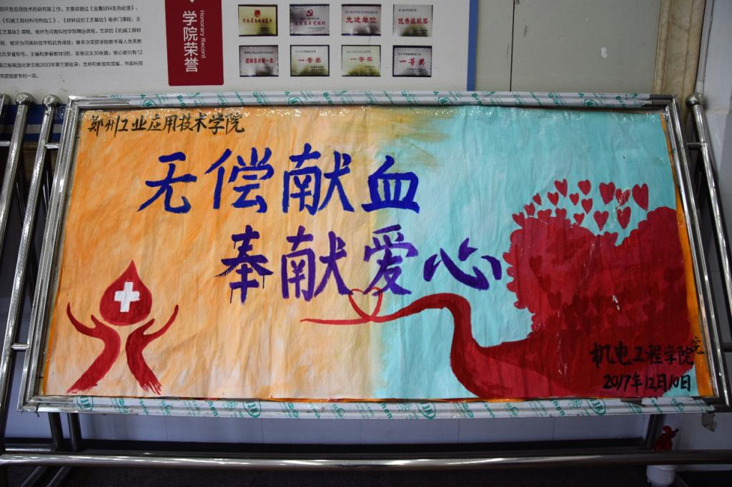 图为放在校园内的无偿献血海报