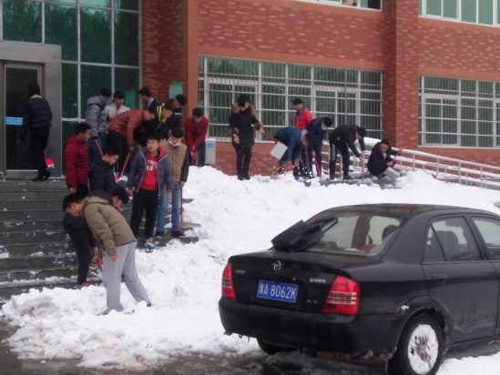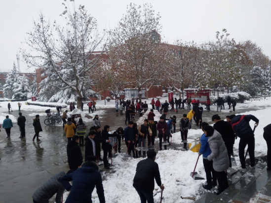 天气虽然寒冷但并没有阻挡员工干部的热情,大家都积极参与,许多班级干部和入党积极分子也投身其中,为老师、同学们的便利而努力。过程中,不少成员打湿了鞋、冻红了手,仍然不停歇,人心齐泰山移,大家在团总支书记李冬冬书记和员工会主席任中瑞主席的带领下,道路很快就恢复了正常。