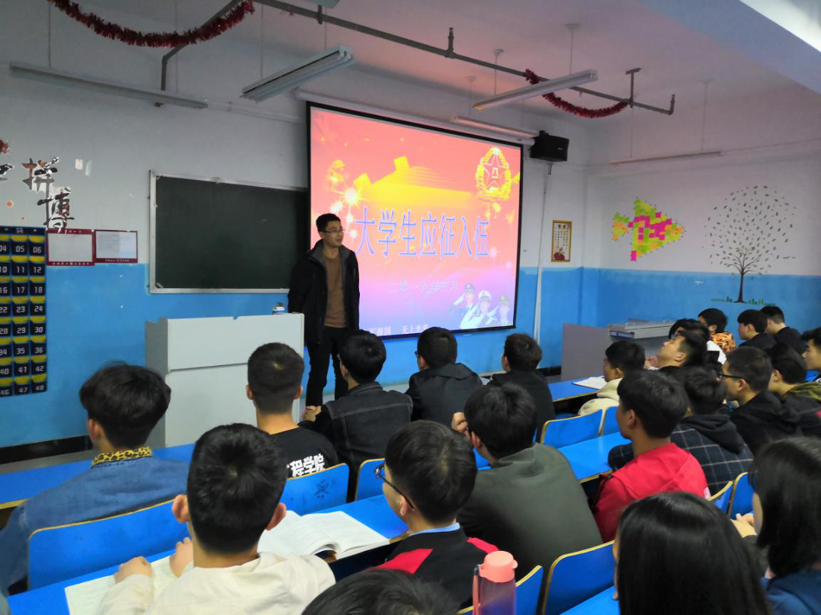 会上,张老师从征兵政策、登记程序、入伍流程等方面向同学们进行详细的解读,结合实例强调了应征过程中应该注意的事项,着重强调了入伍后的经济补贴、返校后的学业支持、毕业后的创业扶持等一系列优惠的征兵政策,增加了同学们参军入伍的决心。最后,张老师就相关疑问进行现场答疑,并希望大家正确看待人生价值,为实现“中国梦”和“强军梦”贡献青春力量。