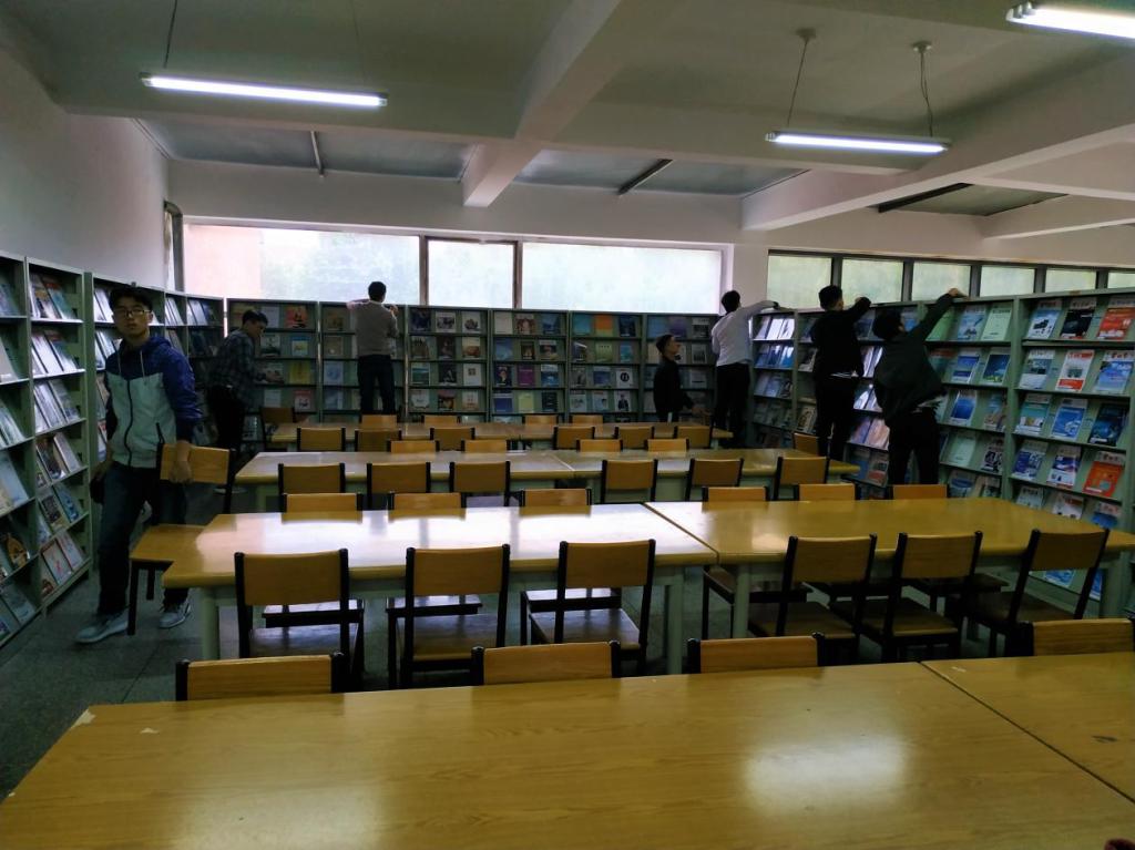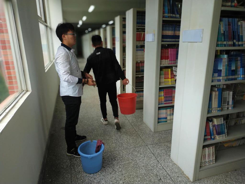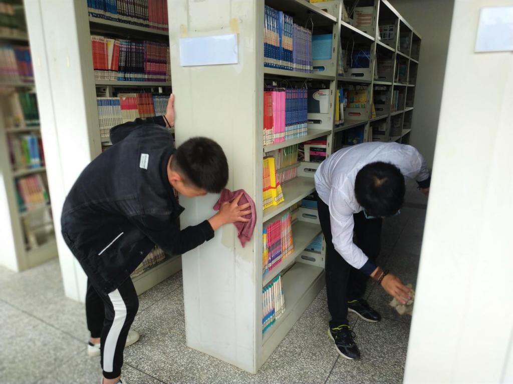 下午4点40分,党员发展对象们在图书馆门口集合,他们自带抹布,为打扫工作积极做了准备。在值班老师的安排下,大家明确分工,不畏脏,不怕累,有条不紊的清理着书库里的每个书架,每个人都忙得不亦乐乎,干的热火朝天。大家齐心协力,将图书馆清理的焕然一新,以实际行动传递着他们的志愿服务精神,留下了自己无私奉献的痕迹。