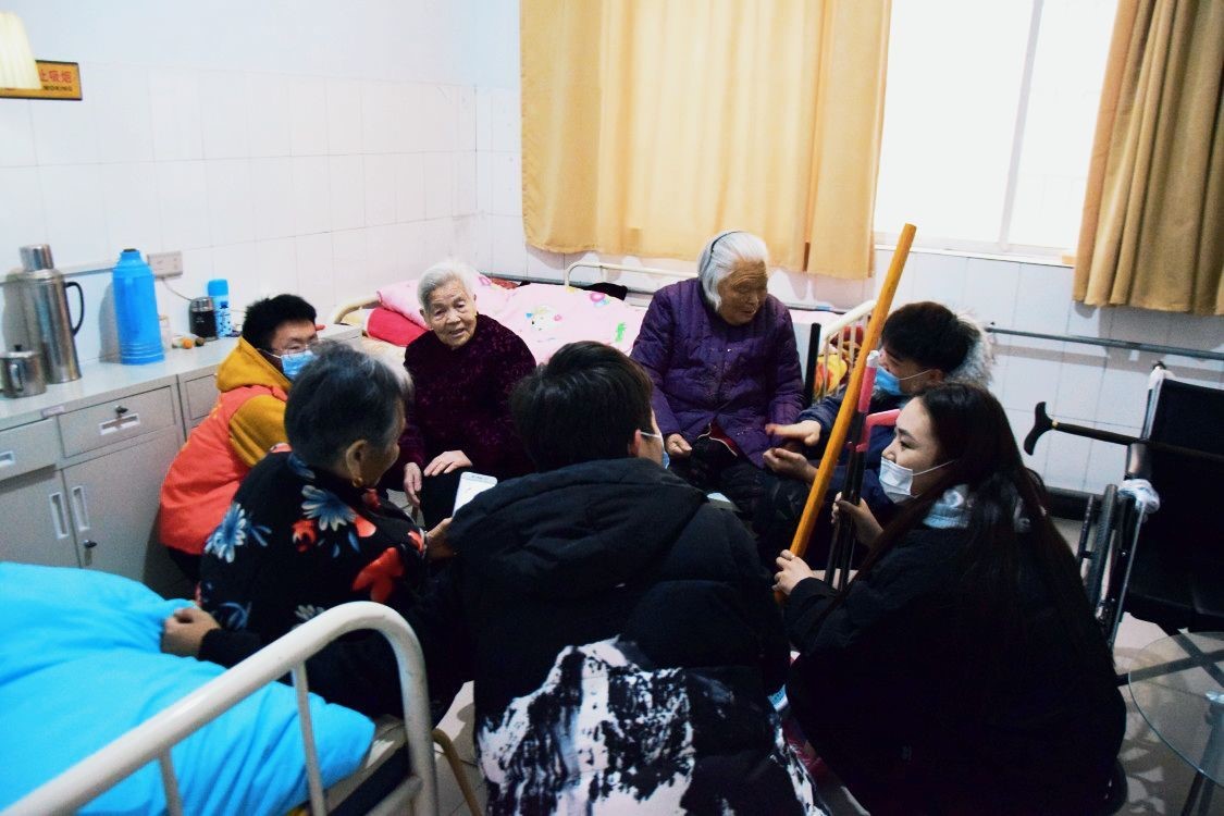 在该老年公寓里,还住着一位已经退休的政治老师,他看见志愿者们仿佛看到自己的孩子一样,仔细询问志愿者的学习、生活及未来就业的情况。当志愿者打扫完敬老院内的卫生要离开时,退休的张老师一直送大家到门口,久久不愿离去。