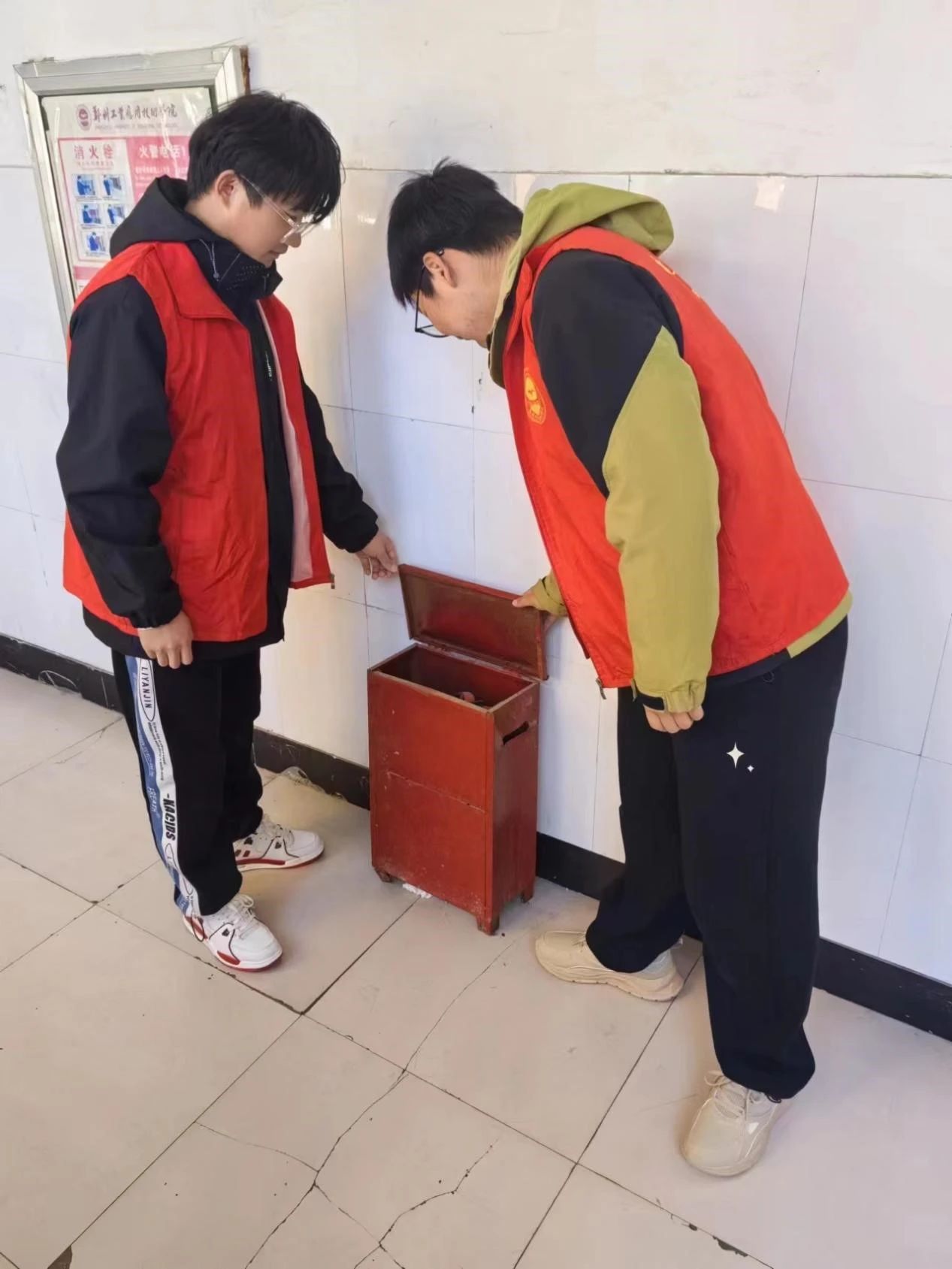 活动开展过程中,志愿者们检查灭火器的压力、灭火剂日期、消防标志等是否正常,以及灭火器是否有损坏、泄漏或是脱落。志愿者们奔走在宿舍楼的每个角落,认真检查每一个灭火器,不放过任何一个细节。确保了宿舍的消防安全,进一步提高了同学们宿舍的安全感、归属感,为同学们提供了安全可靠的居住环境。
