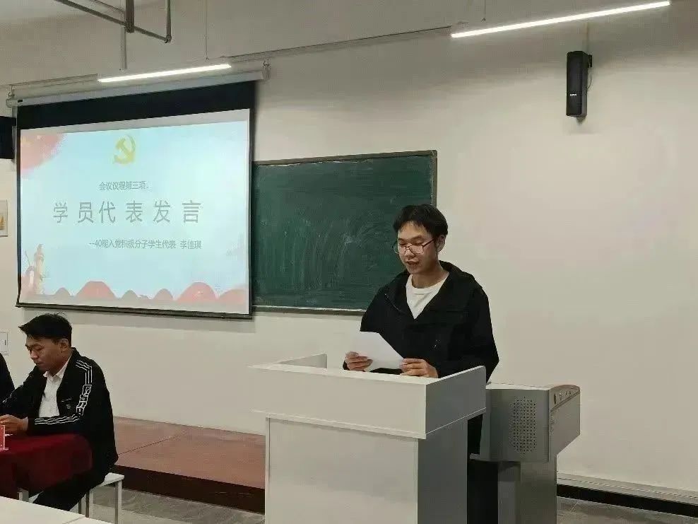 接着,由学员代表赵佳琪同学发言。他表示,作为入党积极分子,不仅要学习党的光辉历史,还要汲取背后蕴含的智慧和精神,要以最饱满的热情、最全面的投入、最实际的行动来完成此次党课的学习,严守纪律,认真听课,以实际行动向党组织靠拢。
