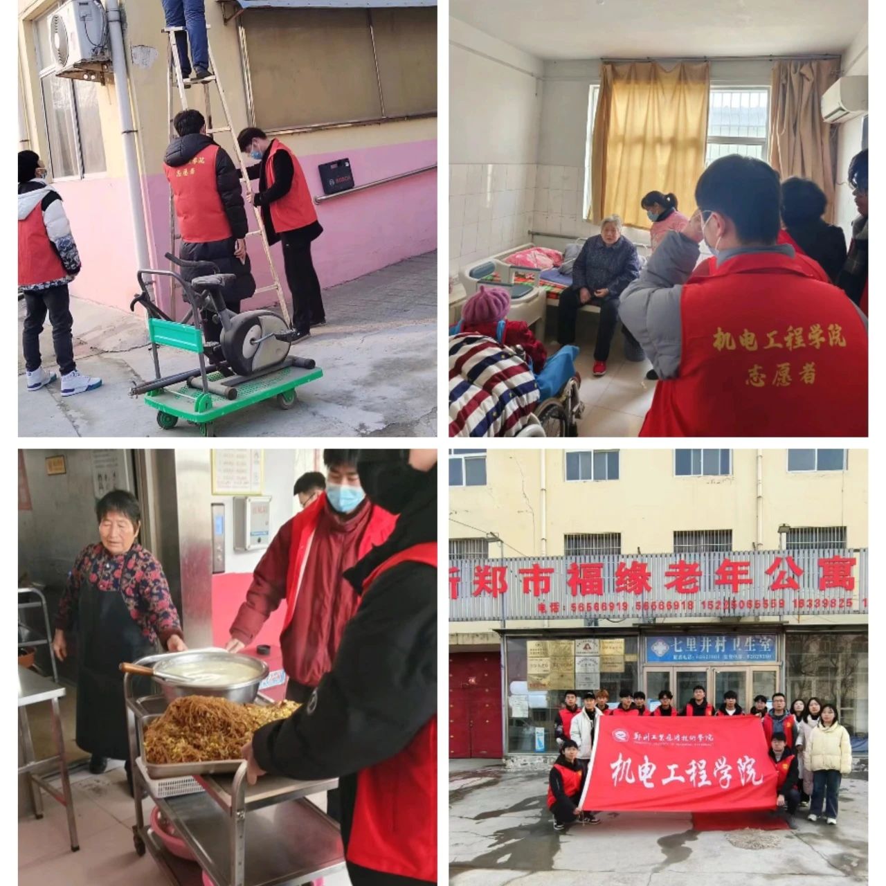 在志愿者们的陪同下,老人们与他们进行了深入的交流,分享了各自的生活状况和心声。为了给老人们带来实际的帮助,志愿者们为他们准备了一些生活用品和小礼物。在活动中,同学们充分发挥团队精神,分工合作,陪伴老人聊天解闷,关心他们的身体健康,协助经理修理公寓内的设施,以及在厨房帮忙烹饪,为老人送餐。