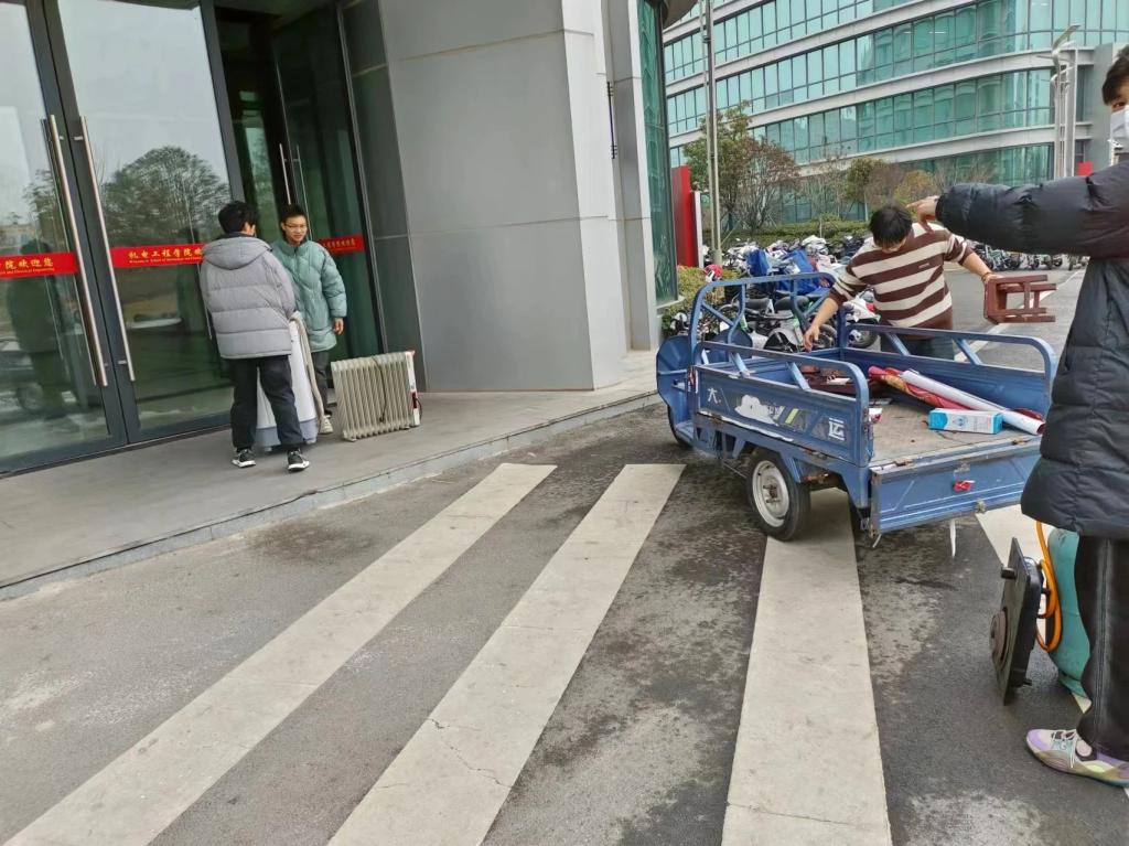 下午,同学们在得知老师们需要搬运物资后,主动联系了相关部门,并组织了一支志愿者队伍,帮助老师们完成物资的拉卸和搬运工作。