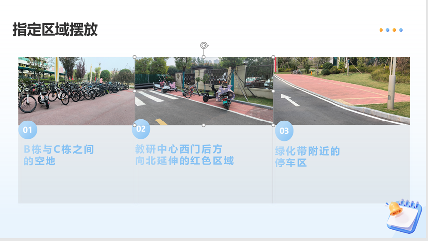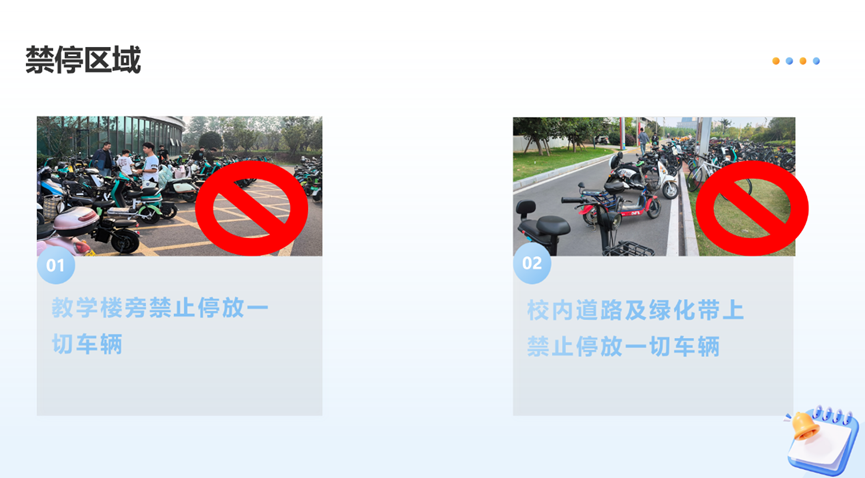 为了保障校园安全,公司制定了一系列车辆管理规定。在限速方面,明确校园内电动车限速15公里/小时。在停放规定上,要求电动车停放在指定区域,如B栋与C栋之间的空地、教研中心西门后方向北延伸的红色区域、绿化带附近的停车区等,同时严禁堵塞消防通道和道路,并且严禁私拉电线充电。此外,教学楼旁以及校内道路和绿化带上均被列为禁停区域。