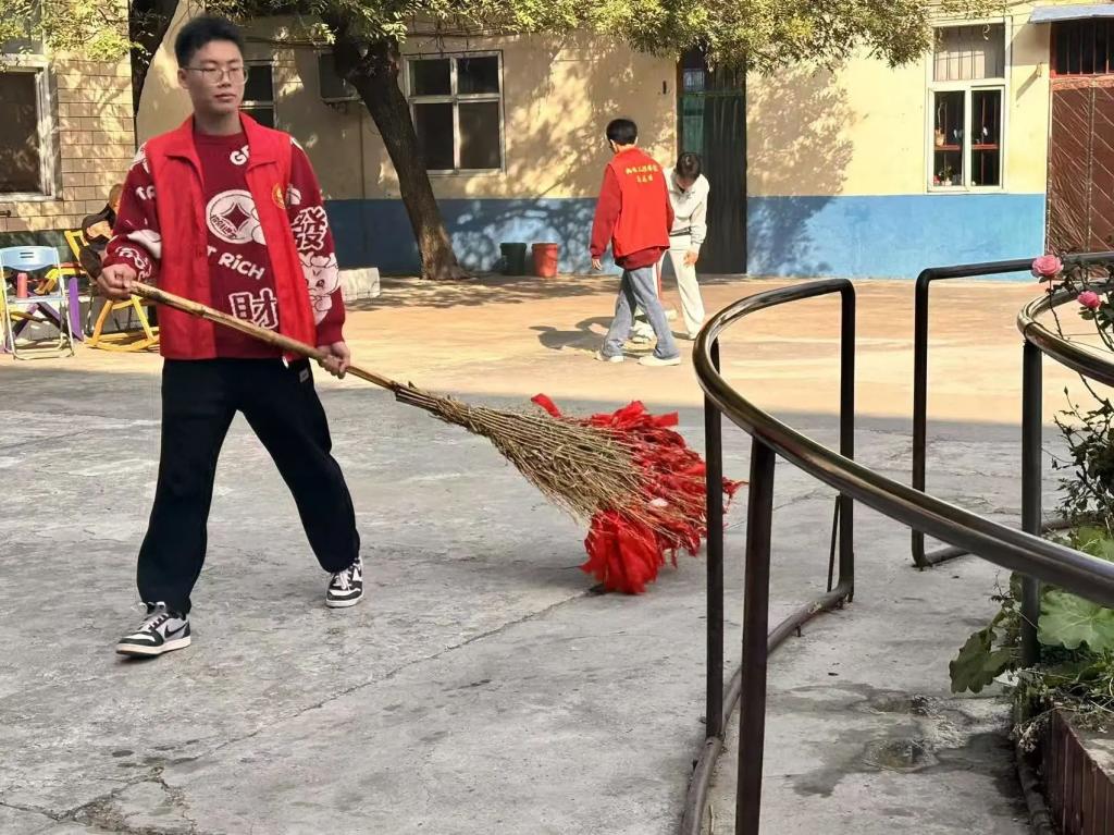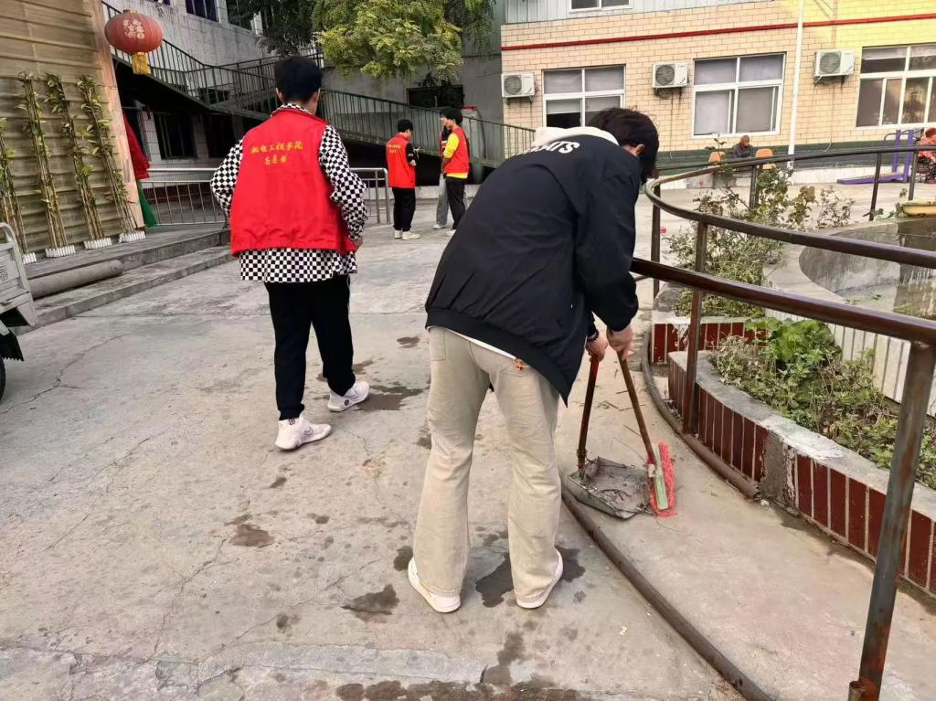 与此同时,养老院的各个角落也活跃着志愿者们忙碌的身影。他们为老人们打扫卫生,无论是老人的房间、走廊,还是公共活动区域,不放过任何一个卫生死角。每一个动作都充满了认真和专注,每一处被清扫过的地方都焕然一新。在志愿者们的努力下,养老院的环境变得更加整洁舒适,为老人们营造了一个良好的生活空间。