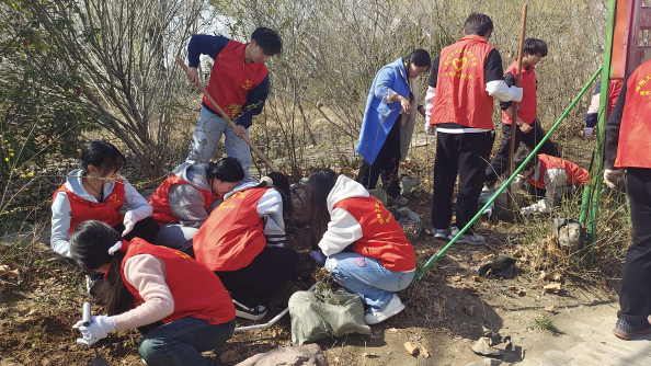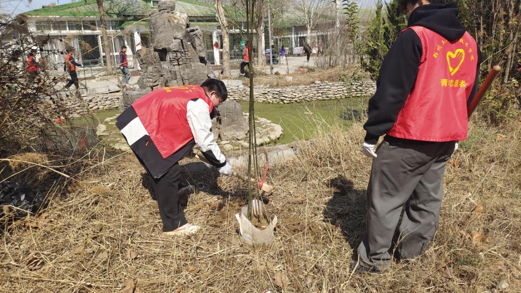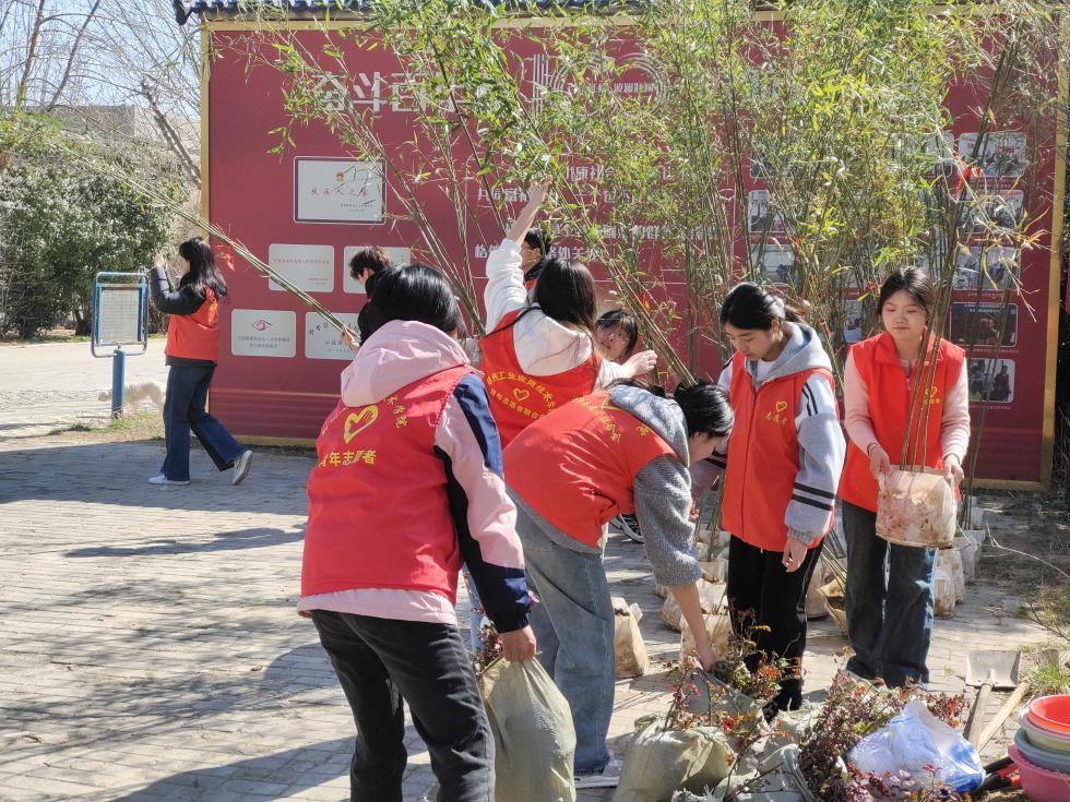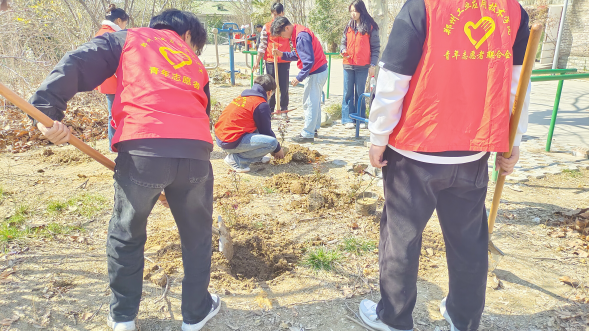 活动当日早上,志愿者们在校园内集合完毕,便满怀热忱奔赴河南残友就业创业孵化基地开展植树活动。在到达河南残友就业创业孵化基地后,志愿者们迅速行动起来,手持工具,在适宜种植的区域里,挥动铲子翻土挖坑,随着坑洞逐渐成形,紧接着进入围土、放绿植、推土环节。他们小心翼翼地将竹苗和花苗放入坑中,然后用力把土围拢过来,确保竹苗和花苗稳固站立,并用工具将周围的土推平、压实,为竹苗和花苗的生长营造良好的土壤环境。