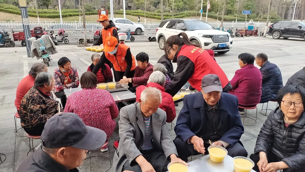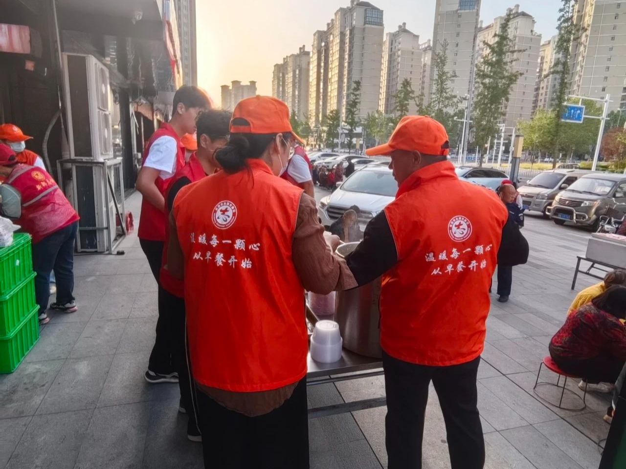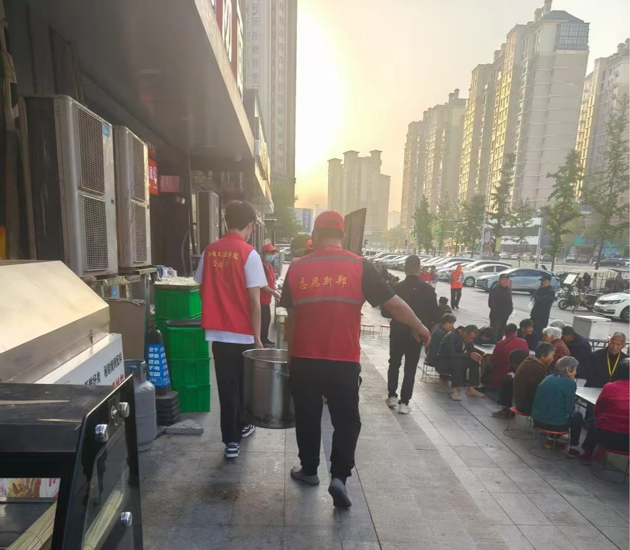 早餐准备就绪后,志愿者们分组为周边的环卫工人、老人等群体送去这份饱含爱意的早餐。每递出一份早餐,志愿者们都会送上真诚的问候与祝福:“您辛苦了,快吃点热乎的吧!”简单的话语,让清晨的寒意瞬间消散,受助者们脸上洋溢着幸福的笑容,感激之情溢于言表。老人和工人们接过这份爱心早餐,不仅满足了他们的口腹之欲,更让他们感受到来自社会的关爱与尊重。