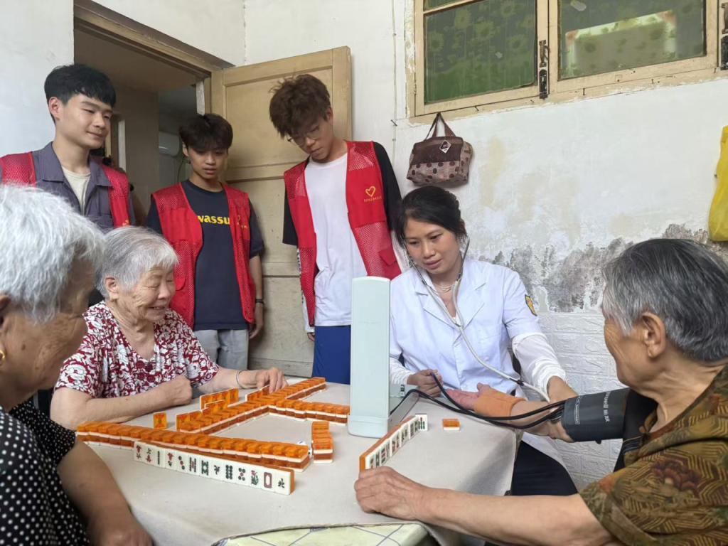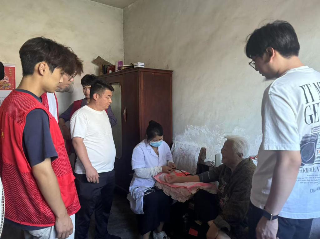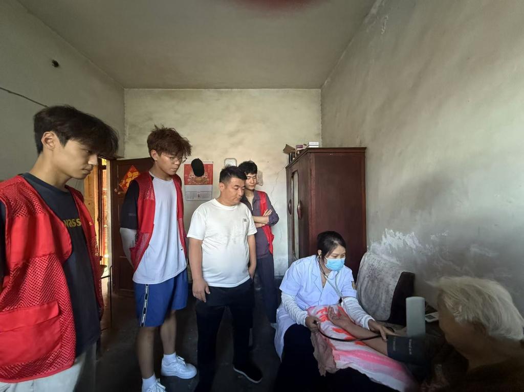 更令人动容的是,志愿与医护团队还专程前往两位高龄老人的家中。一进门,关切之声便不绝于耳。医护人员认真为老人测量血压,专注记录数值,并仔细检查他们的四肢活动能力,轻声询问是否有不适。志愿者们则陪伴在侧,用轻松的对话缓解老人的紧张情绪。屋内陈设朴素,却因这份突如其来的问候而显得格外温暖。老人紧紧握住大家的手,连声道谢,那些质朴的话语中承载着满满的感动。