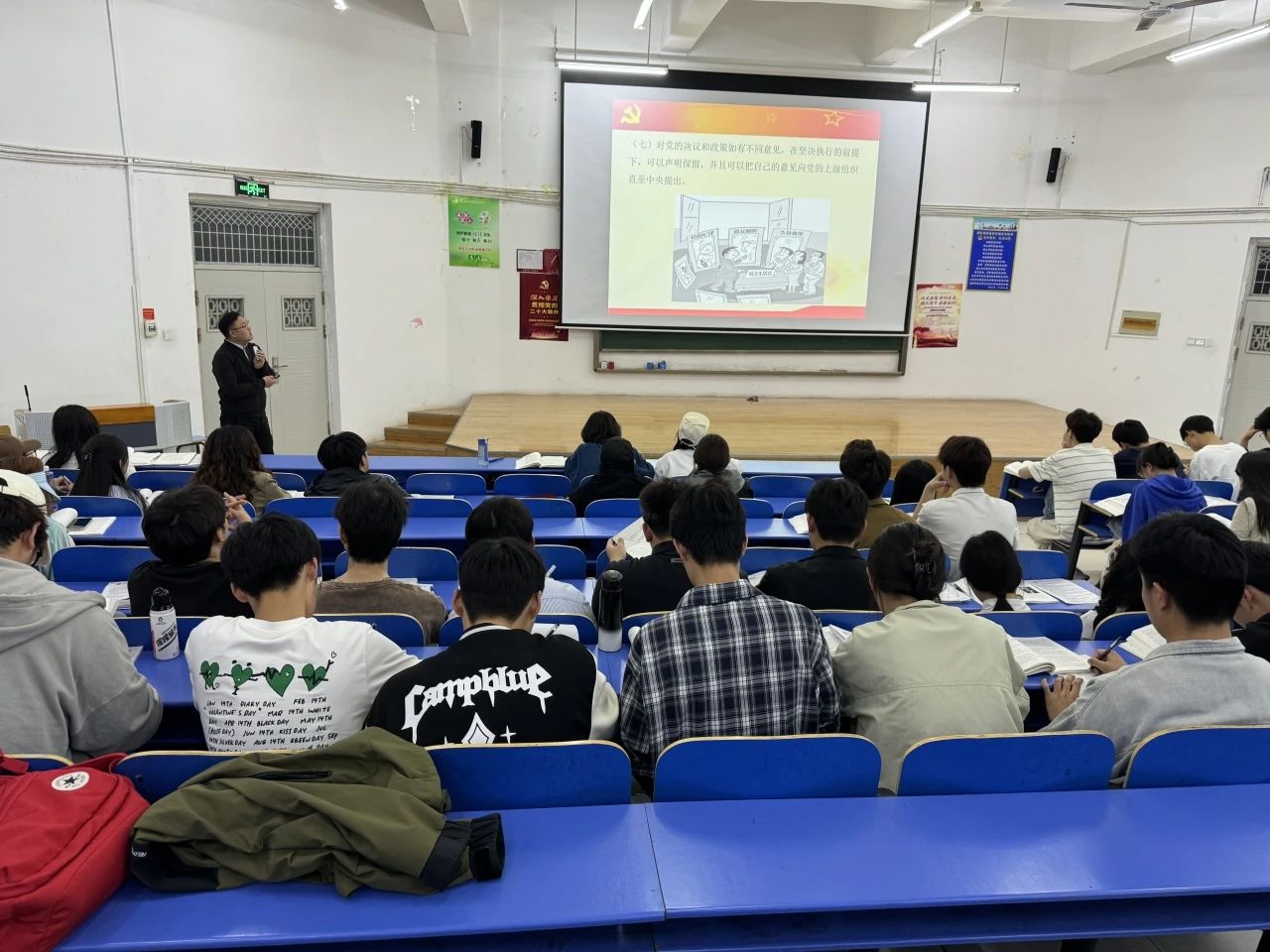 下午2点30分,王晓凯老师开展培训课程第二讲“新形势下党内政治生活的若干准则”、“发展党员工作的总要求和原则”。王晓凯老师首先强调了新形势下党内政治生活的重要性和紧迫性,指出党内政治生活是党团结统一、凝聚力战斗力的重要源泉,也是党的生命力和创造力的重要体现。紧接着,他从党的历史使命和时代要求出发,详细阐述了党内政治生活的若干准则,包括坚定政治信仰、强化政治纪律、严肃党内监督等方面。随后,在谈及发展党员工作的总要求和原则的同时,王晓凯老师明确指出:发展党员工作要坚持标准、保证质量、慎重发展、宁缺毋滥。并强调,学员们要以高度的政治责任感和使命感,严格按照党章和《中国共产党发展党员工作细则》的要求,把政治标准放在首位,确保新发展的党员具有坚定的政治信仰、优良的品质作风和扎实的业务能力。