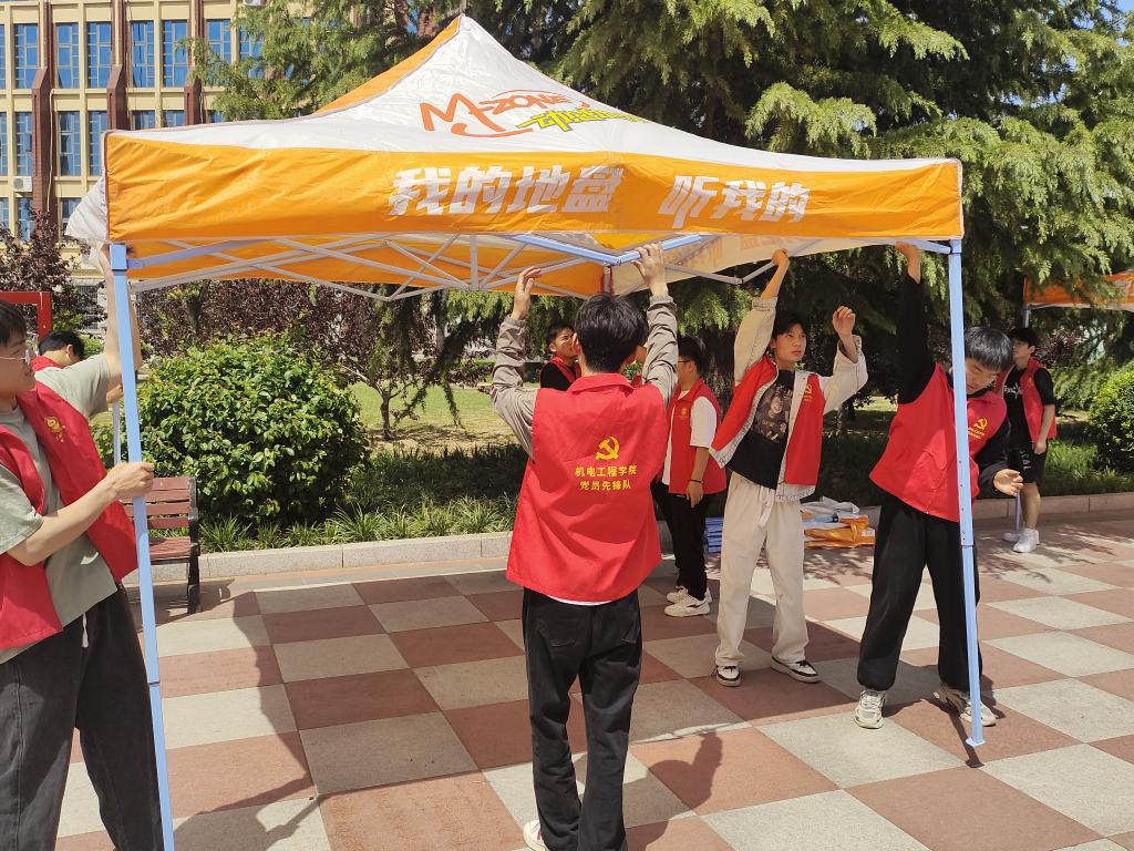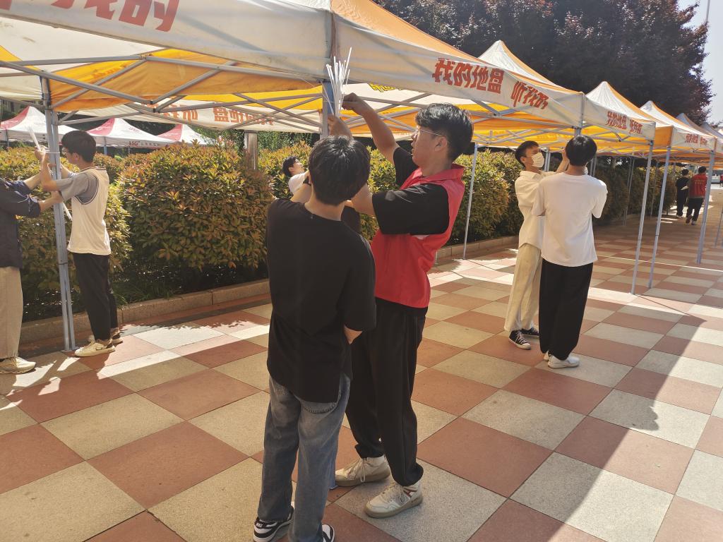 在搭建过程中,志愿者们充分发挥了团队合作精神,他们互相帮助,互相鼓励,克服了种种困难。经过几个小时的忙碌,所有帐篷终于搭建完成,会场布置得既美观又实用,为双选会的顺利举办提供了坚实的保障。