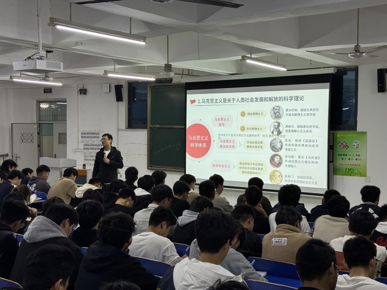 (文/齐超 图/夏高祥 高亚东)beats365唯一官方网站第四十三期入党积极分子培训班第三讲——“坚持党的基本理论,继承和发展马克思主义”于10月25日晚在建工楼北四教室如期举行。本次党课由王晓凯老师主讲,第四十三期入党积极分子全体参与,旨在帮助入党积极分子深入理解党的基本理论,明确马克思主义在党和国家事业发展中的指导地位。