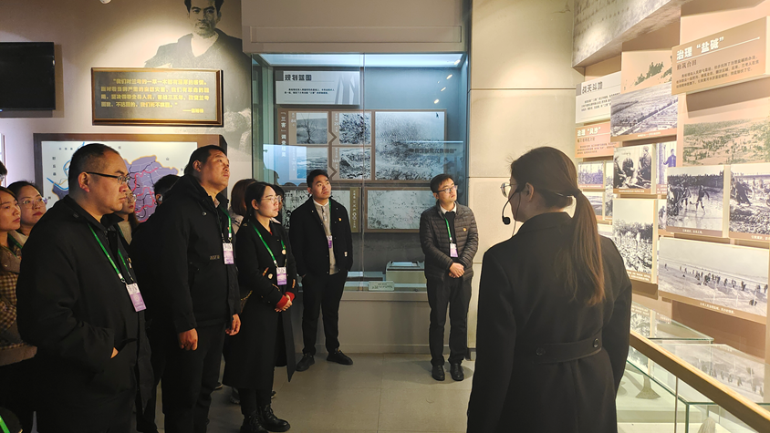 在黄河东坝头段,大家共同参观黄河治理展览馆,详细了解了黄河治理、堤坝工程、三害成因以及实施黄河生态流域高质量发展战略的伟大成就,深刻感悟一代代中国共产党人接续奋斗治理黄河的艰辛不易。