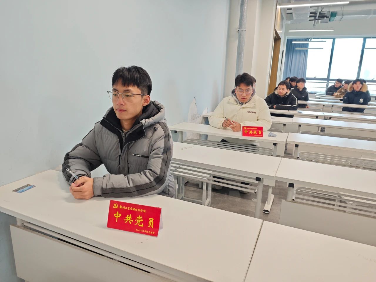 考试开始前,党员们集体佩戴党员徽章,并在座位上摆放“中共党员”桌牌。党员牌不仅彰显了他们的党员身份,更是一种无声的承诺,表明党员们在考试中严格遵守考试纪律,自觉接受老师和员工的监督,拒绝任何形式的作弊行为,以实际行动展现党员的先进性和责任感。在考试过程中,党员们以身作则,认真审题、独立思考,考场内秩序井然,展现了公司员工党员良好的精神风貌和学术诚信。