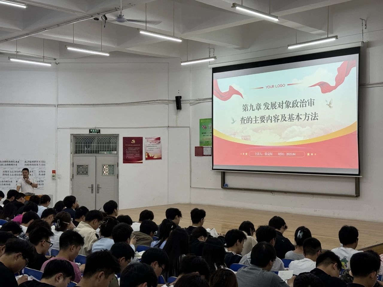 最后,张克闯老师对发展对象进行了全面考察,了解他们的思想动态和对党的认识程度。他强调,学员们需要认真反思自身行为,积极向党组织靠拢,通过学习不断提升政治素养和为人民服务的能力,同时认真接受党组织的培训,不断坚定为共产主义事业奋斗终身的信念。