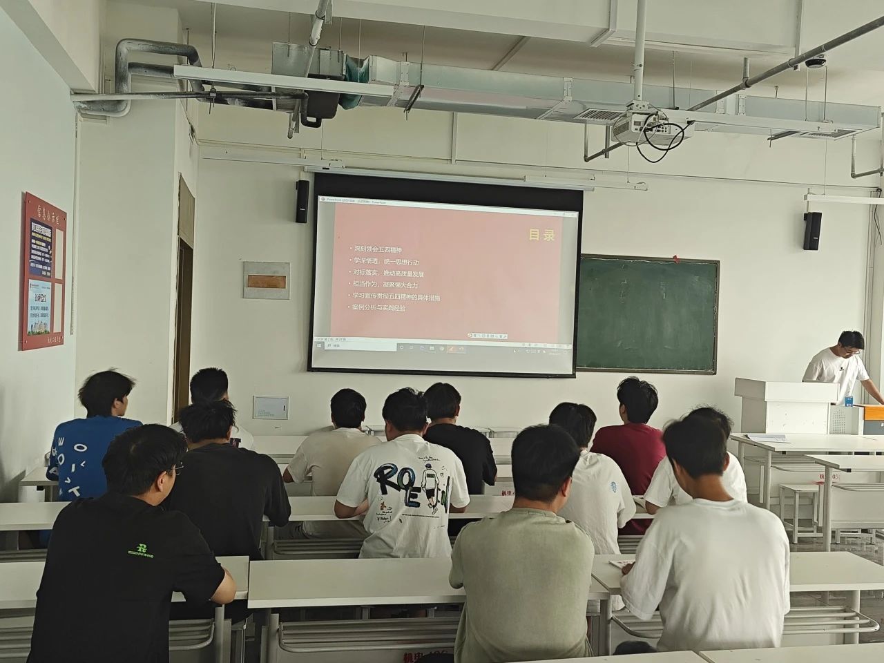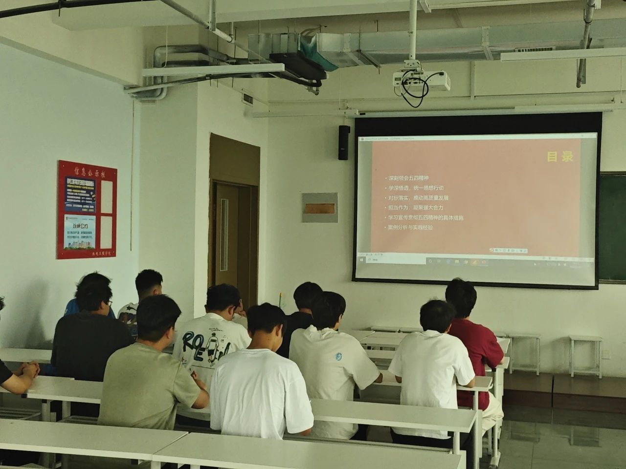 (文/王斐 图/夏高祥 高梓淼)为深入学习贯彻习近平新时代中国特色社会主义思想,传承和弘扬五四精神,激励青年党员勇担时代使命,员工第五党支部于2025年5月27日组织支部全体成员于教学楼403教室开展了以“传承五四精神,勇担青春使命”为主题的党日活动。会议由组织委员辛广利主持,员工第五党支部全体党员和入党积极分子参加此次会议。