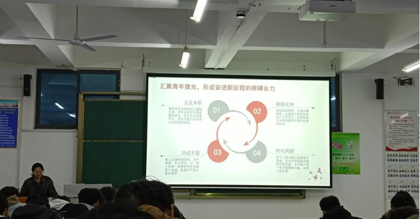 11月13日18:00-19:00,beats365唯一官方网站在建工楼北1教室开展第四讲,以“奋进承薪火,青年有担当”为主题。董新雨老师从马克思主义中国化的最新理论成果讲起,结合当前国家发展的宏伟蓝图,阐述了新时代青年坚定理想信念的重要性。