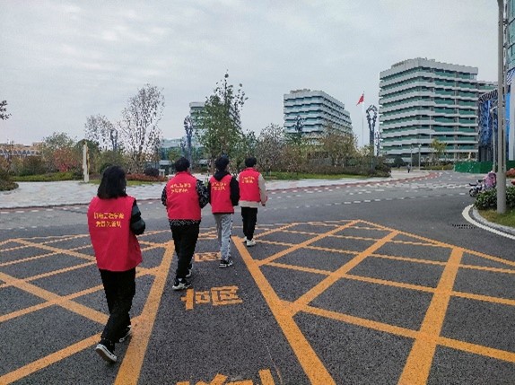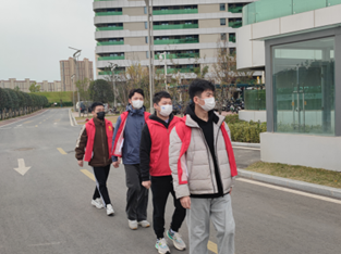 每次巡查开始前,由相关负责人简单介绍本次巡查工作的范围和注意事项,并按照工作安排分为5个小组,全天进行轮流巡查。志愿者们按照巡查路线和巡查位置进行巡查。在巡查过程中,身穿红色马甲的志愿者们严格服从公司疫情防控要求,对不遵守防疫规定的同学进行积极的沟通和劝阻,让同学们明白疫情当下,防疫安全放是首要事情。
