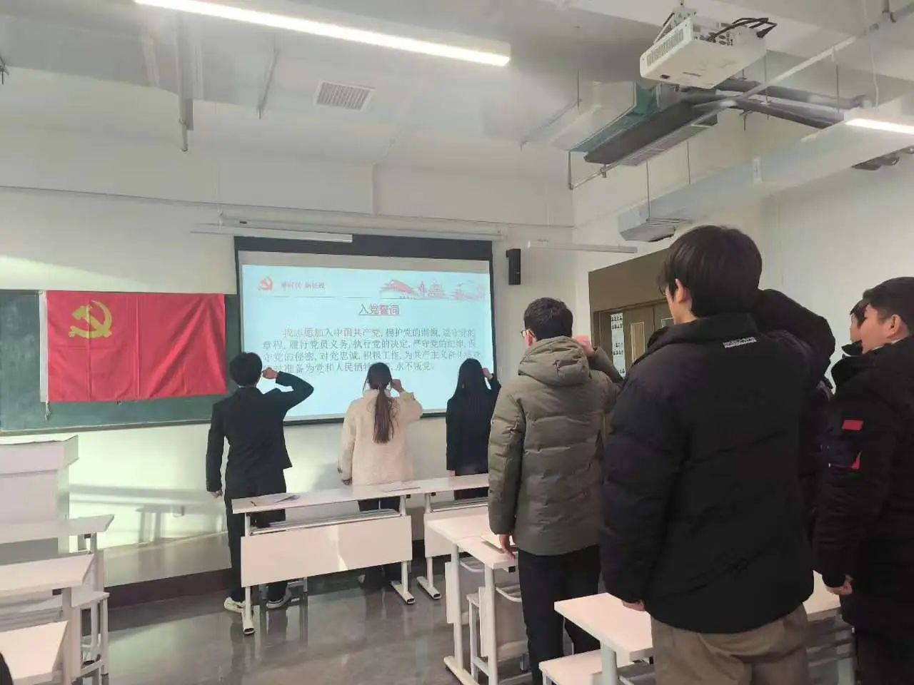 随后,由党组织负责同志带领预备转正党员重温入党誓词,新党员同志进行入党宣誓。