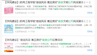 同时,利用公司网站、微信公众号等平台发布学风建设相关活动,开展学雷锋志愿服务、专业特色社会实践等活动,让学风建设融入校园生活各方面。