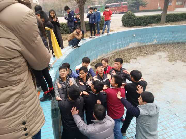 本次活动旨在拉近社员之间的关系,增进社员之间的友谊,从而使社员能够团结共进,推进社团的发展今天下午我们共进行了两个活动,第一个活动叫做"红旗飘飘".这期间总队长发给各队各一面空白的红旗,要求各队员设计并确定出该队的队名队旗.队徽.队歌以及队训,并要求各队队员选出该队的队长.宣传委员.卫生委员和旗手, 最后还要求各队设计并出演一个情景剧。活动一开始,两个队的队员便进入了激烈的讨论中,队员们各抒己见,畅所欲言,积极投身到这个活动中,一一完成了队长布置的任务,尤其是在演情景剧这一环节,更让我们充分见识到了队员们丰富的想象力和老员工特有的朝气活力和热情。随着活动的进行,春天里那仅有的一抹略带暖色的阳光也不知不觉得吹到了北操,留下的唯有温暖第二个活动叫做“驿站传书”,就是由队员组成一列纵队,队员们在私下自己决定动作,从而在默契的配合下传递一串数字,这个活动考验了队员们团结合作的精神.快速反应的能力以及超强的记忆力......此时,天气愈加的寒冷,场面亦愈加的火热.... 五、活动总结:经过这次素质拓展训练,我们对“机器人社团”有了更深的感情,结交了更多的朋友,同时更加坚定了我们要将这个社团办强办大的决心拓展训练结束了,我们战胜了心魔,更由内心的极大恐惧到无所畏惧,经历了心理与生理的考验,真正实现了认识自我、挑战自我、超越自我的目标,更熔炼了一只坚强、团结的优秀团队,每个人都从中得到了或多或少的启发,但我们是否能真正把拓展中的精神运用到工作中去,能否把得到的启示运用到生活中去,还需要一个更长的磨练过程。在训练中,我们取得好成绩,得益于团队成员都有强烈的集体荣誉感。通过完成一个集体项目,我们手牵手,心连心,充分发挥集体的智慧,个人的潜能都有效发挥出来了。