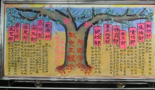 团学会结构:主席团,办公室;下设:纪检部,劳卫部,记者站,生活部,学习部,女生部,素质拓展部,信息部,宣传部,文艺部,体育部,组织部,体育部。
