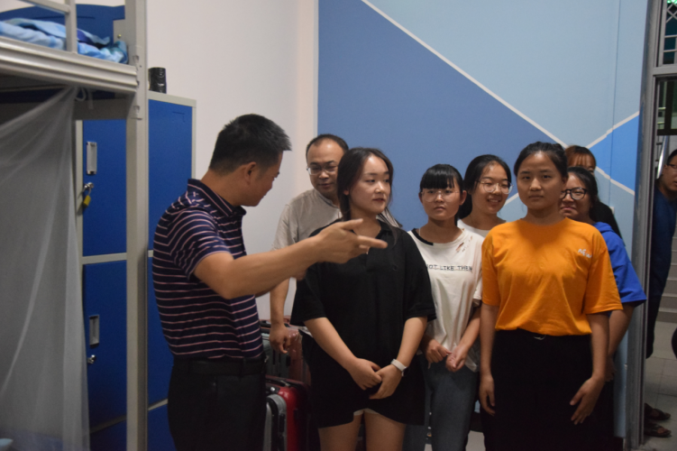 王董事长一行人在公司辅导员老师的指引下,走访了各个新生宿舍。校领导每到一个宿舍都会和宿舍的同学亲切交谈,并受到同学们的热情欢迎。王董事长询问大家刚入学的感受,并对他们提出要尽快适应老员工活,做好从高中生到老员工的转变,对未来做出合理的规划。希望同学们在学好专业课的同时积极参加各种文体活动,提升自我。最后叮嘱同学们之间要互相理解,互相宽容,建立融洽的同学关系。