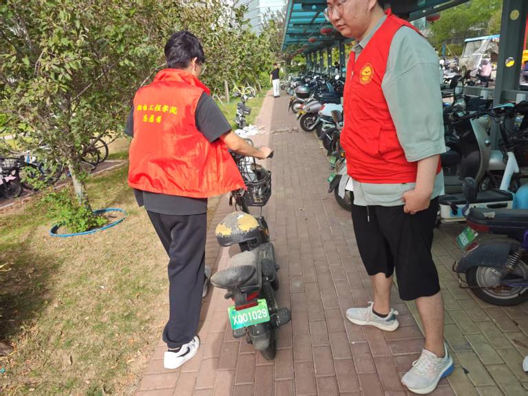 活动当天,志愿者们迅速进入工作状态,按照提前规划的分工方案,两人一组默契配合。他们穿梭在宿舍楼周边区域,将随意停放的电动车逐一挪至指定停车位。每挪动一辆车,都会仔细调整方向,确保所有电动车车头朝向一致,排列得整整齐齐。针对充电区长期存在的拥堵问题,志愿者们主动上前,以温和亲切的态度耐心引导车主规范充电,不仅协助车主将电动车正确接入充电桩,还结合过往因乱停乱放引发安全隐患的真实案例,详细且耐心地讲解规范停车的重要性,用通俗易懂的语言让车主们深刻认识到规范停车对维护公共秩序、保障生命财产安全的意义。