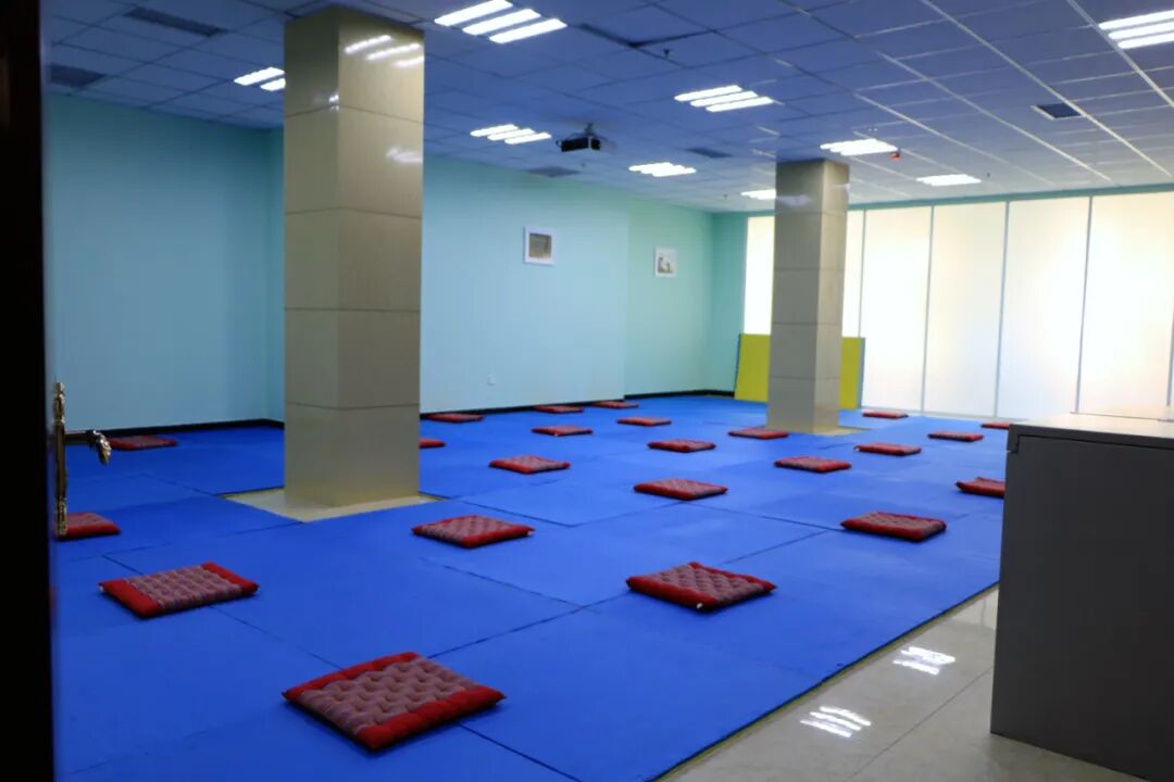 团体活动室分为团体辅导桌椅室和放松冥想室,各占地123平米,配备了多媒体投影系统、专业的团体辅导桌椅和器材,可以实现60人左右的团体辅导活动,致力于通过自我认知、情绪宣泄、压力管理、人际交往等不同主题的活动促进员工的心理健康和积极成长。放松冥想室致力于团体活动者的身心放松,同学们可以在音乐的伴随下舒展肢体,释放压力。老员工心理健康教育中心将坚持每月至少开展2期团体活动,通过微信、网站等招募活动成员,敬请留意。